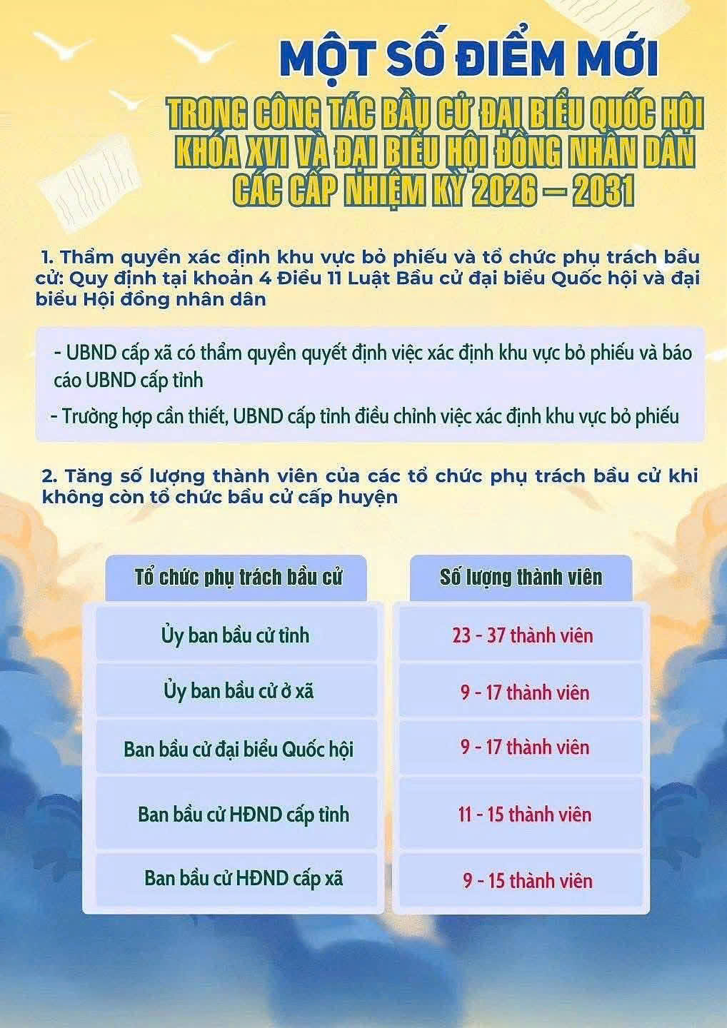 Một số điểm mới về công tác Bầu cử đại biểu Quốc hội và đại biểu HĐND các cấp nhiệm kỳ 2026 - 2031