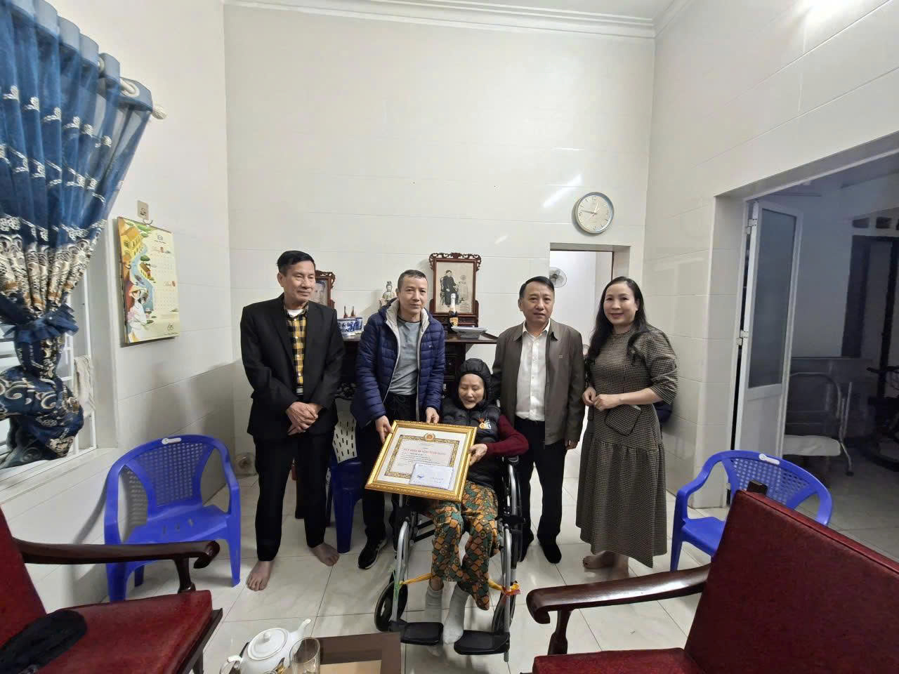 Đoàn công tác đồng chi Nguyễn Quốc Thái - Phó Bí thư, Chủ tịch UBND phường trao huy hiệu 75 năm cho đảng viên Nguyễn Thị Hạt