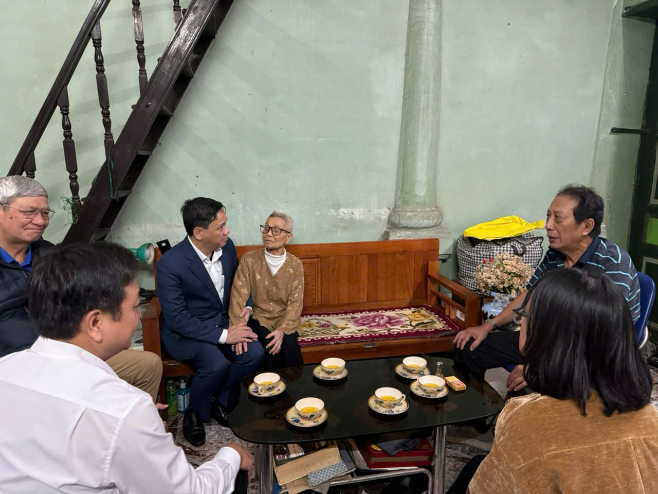 Đoàn công tác đồng chi Nguyễn Quốc Thái - Phó Bí thư, Chủ tịch UBND phường trao huy hiệu 65 năm cho đảng viên Nguyễn Văn Chương