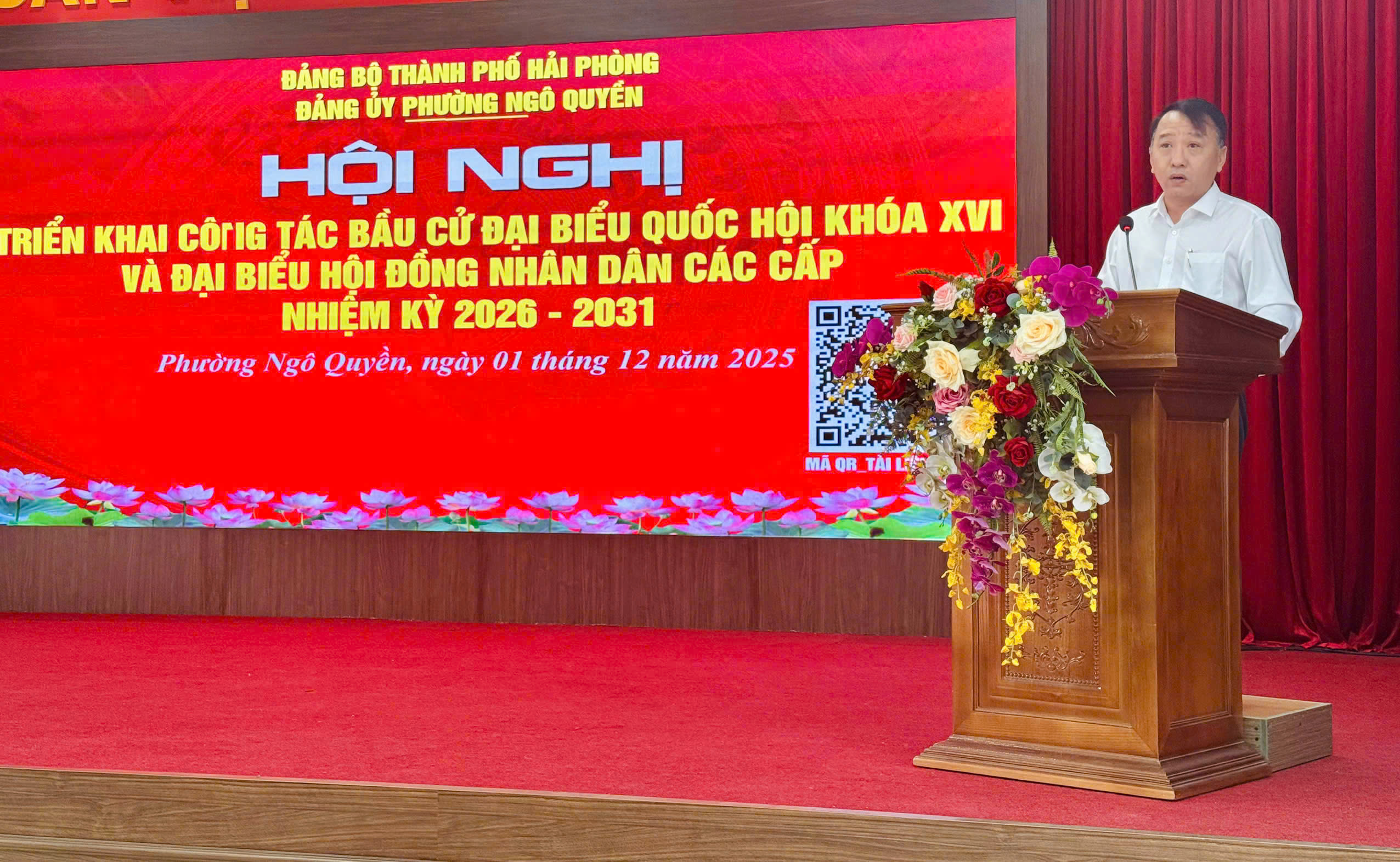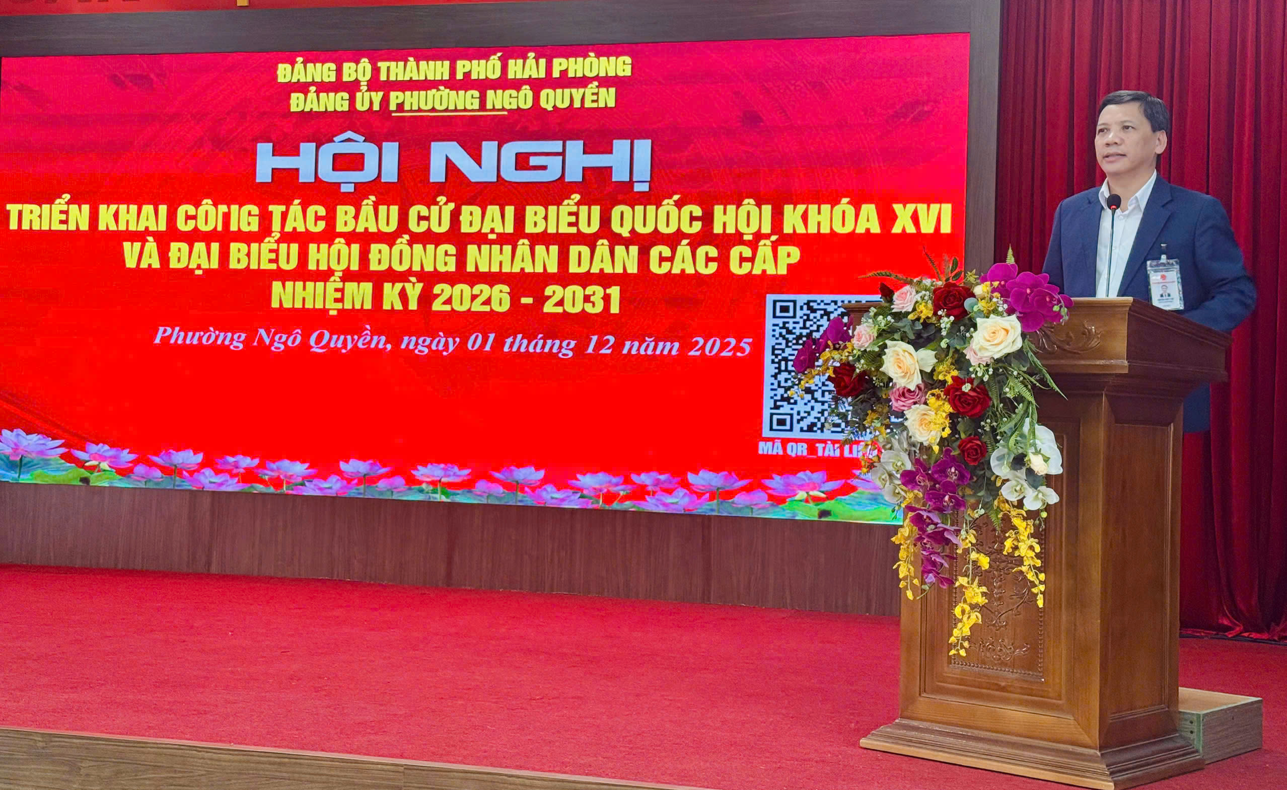 Thực hiện Chỉ thị số 01-CT/TU, ngày 23/7/2025 của Ban Thường vụ Thành ủy và Thông tri số 01-TT/ĐU, ngày 08/8/2025 của Ban Thường vụ Đảng ủy về lãnh đạo, chỉ đạo cuộc bầu cử đại biểu Quốc hội khóa XVI và đại biểu Hội đồng nhân dân các cấp nhiệm kỳ 2026 - 2031; Ngày 01/12/2025, Đảng ủy Phường Ngô Quyền tổ chức Hội nghị triển khai công tác bầu cử đại biểu Quốc hội khóa XVI và đại biểu Hội đồng nhân dân các cấp nhiệm kỳ 2026 - 2031.