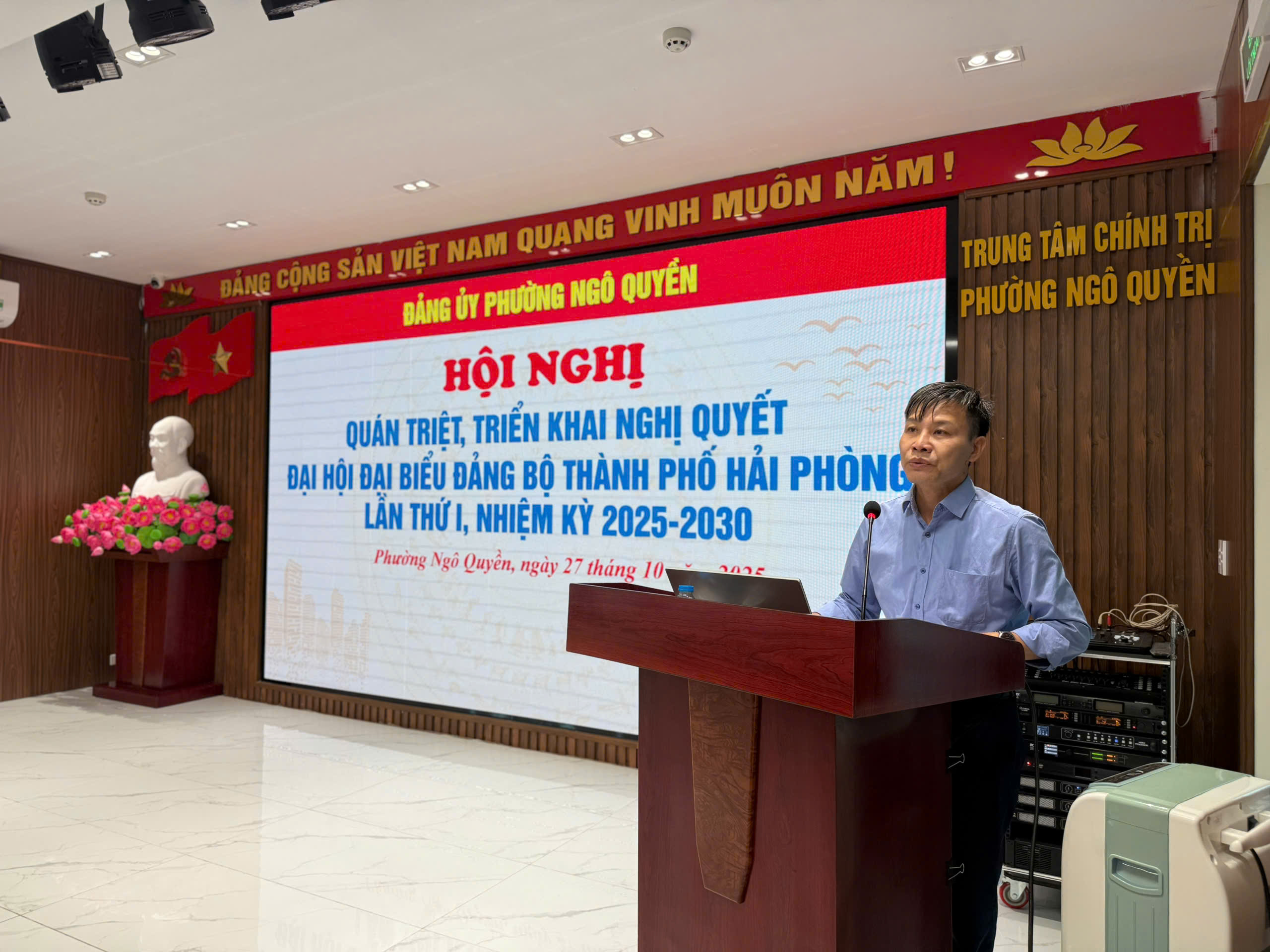 Tại hội nghị, các đại biểu đã được nghe đồng chí Nguyễn Văn Hiểu – Phó Trưởng ban Ban Tuyên giáo và Dân vận Thành uỷ, báo cáo viên hội nghị quán triệt Nghị quyết Đại hội đại biểu Đảng bộ Thành phố Hải Phòng lần thứ I, nhiệm kỳ 2025-2030.