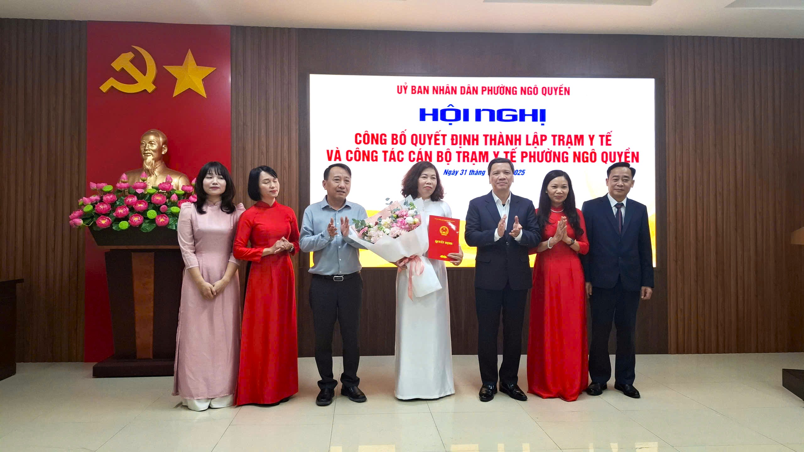 Các đồng chí lãnh đạo phường trao Quyết định và tặng hoa chúc mừngTại Quyết định, UBND phường giao đồng chí Nguyễn Thị Loan - Đảng ủy viên, Trưởng phòng Phòng Văn hóa - Xã hội phụ trách Trạm Y tế Phường Ngô Quyền kể từ ngày 01/01/2026 cho đến khi kiện toàn xong các chức danh lãnh đạo, quản lý.