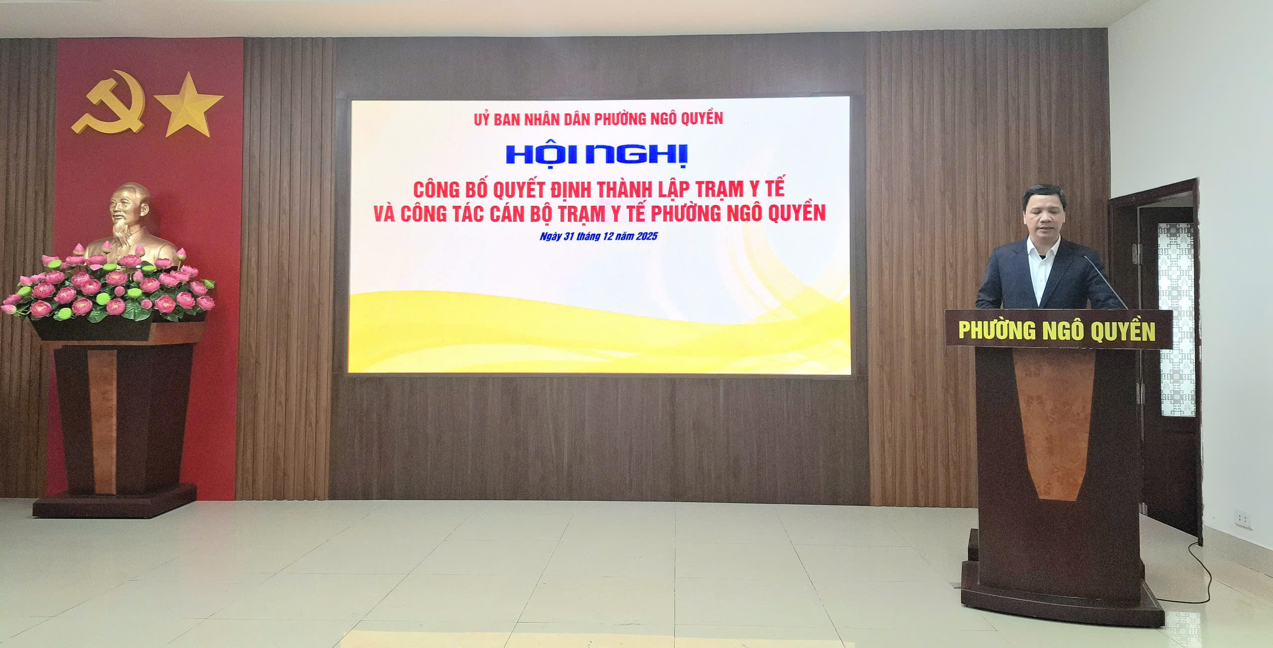 Chiều ngày 31/12/2025, UBND Phường Ngô Quyền tổ chức hội nghị công bố quyết định thành lập Trạm Y tế, các điểm Trạm Y tế; Công bố Quyết định bổ nhiệm Giám đốc Trạm Y tế phường.