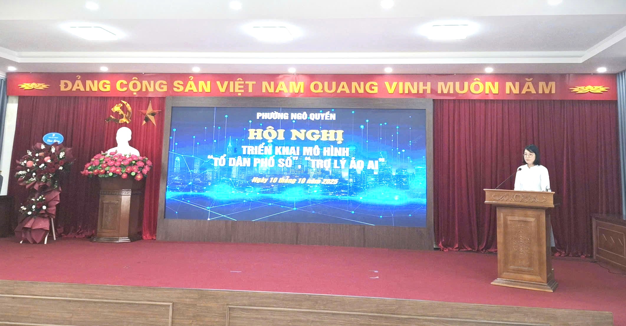 Tại hội nghị, các đại biểu đã được nghe và xem giới thiệu về mô hình “Tổ dân phố số” và giới thiệu về mô hình “Trợ lý ảo AI” hỗ trợ người dân và doanh nghiệp khi khai thác thông tin trên Công Thông tin điện tử Phường Ngô Quyền. Mô hình "Tổ dân phố số" và “Trợ lý ảo” hỗ trợ về thủ tục hành chính, các thông tin về tình hình kinh tế - xã hội. Đây không chỉ là nơi ứng dụng các nền tảng số trong quản lý, điều hành, mà còn là không gian để người dân chủ động tiếp cận thông tin, tham gia giám sát, tương tác với chính quyền địa phương và cùng nhau xây dựng một “cộng đồng số” văn minh, hiện đại, nghĩa tình trong Nhân dân.