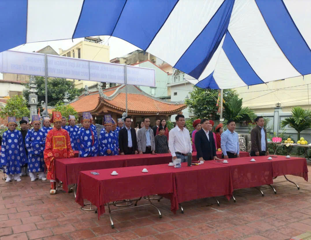Các đồng chí lãnh đạo ĐU - HĐND - UBND -UBMTTQ Việt Nam phường tại Lễ dâng hươngQua các thư tích, sử liệu cổ cùng truyền thuyết lưu truyền trong nhân dân. Đức thánh Nam Hải Đại Vương Phạm Tử Nghi tên huý là Thành quê ở xã Vĩnh Niệm, tổng An Dương, huyện An Dương, phủ Kinh Môn, trấn Hải Dương. Ngọc phả Nam Hải đại vương chép Nam Hải Đại Vương Phạm Tử Nghi được vua Mạc sai đem quân lên biên giới ngăn chặn tham vọng của nhà Minh trong việc xâm chiếm đất nước ta. Nhằm bảo vệ sự toàn vẹn lãnh thổ, sơn hà, xã tắc, quân của ông đi đến đâu thắng tới đó. Để ghi nhớ công lao Nam Hải Đại Vương Phạm Tử Nghi, các triều đại phong kiến đã sắc phong cho các đình, miếu thờ Nam Hải Đại Vương Phạm Tử Nghi vào năm Cảnh Trị thứ tám, đời vua Lê Huyền Tông (năm1670).