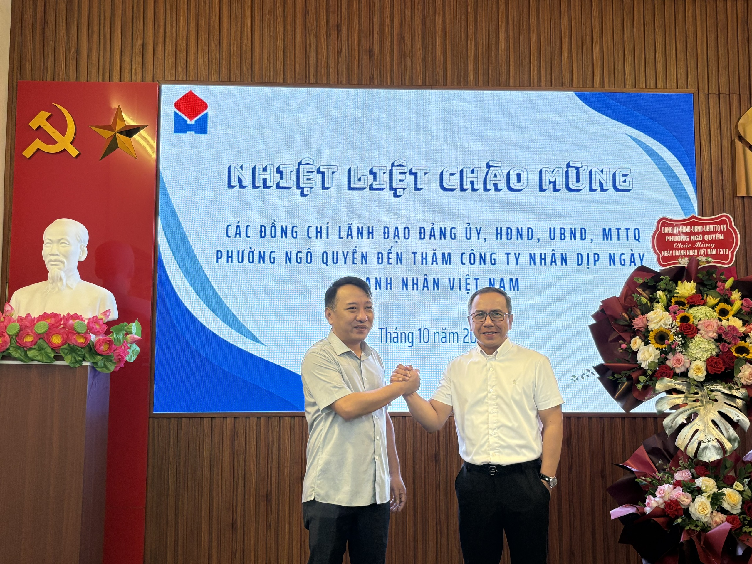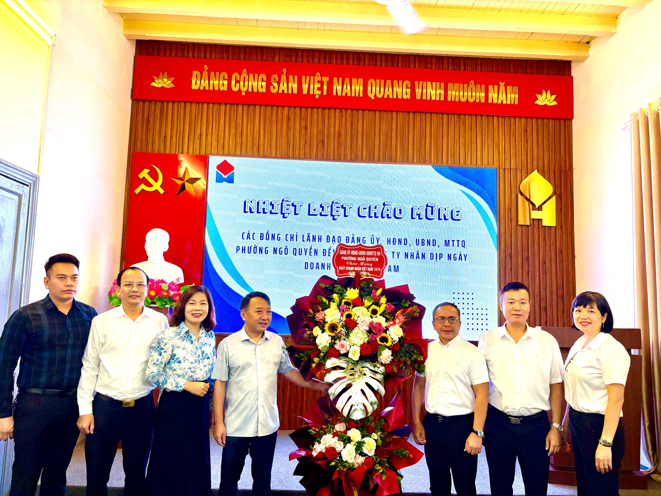Sáng ngày 10/10/2025, 03 Đoàn công tác do các đồng chí Cáp Trọng Tuấn - Bí thư Đảng ủy, Chủ tịch HĐND phường là Trưởng đoàn công tác số 1; Đồng chí Nguyễn Quốc Thái - Phó Bí thư, Chủ tịch UBND phường là Trưởng đoàn công tác số 2; Đồng chí Nguyễn Văn Thành - Phó Bí thư Thường trực Đảng ủy phường là Trưởng đoàn công tác số 3 của Phường Ngô Quyền đã tới thăm và chúc mừng các doanh nghiệp trên địa bàn phường.