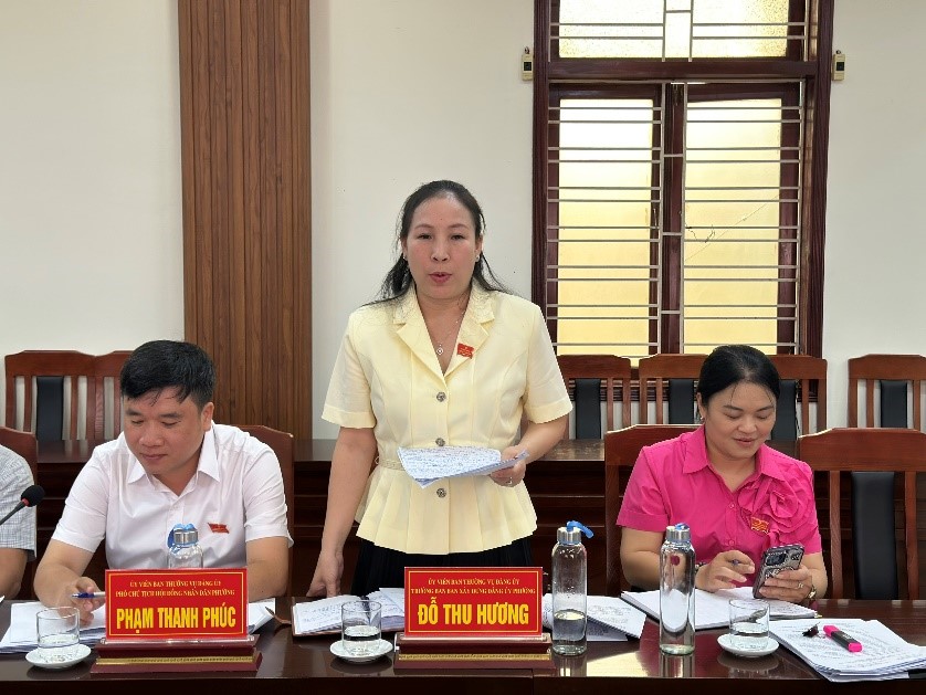 Bà Đỗ Thu Hương -UVBTV Đảng uỷ, Trưởng ban Xây dựng đảng Đảng uỷ, Trưởng ban Kinh tế - Ngân sách HĐND phường, thành viên Đoàn giám sát tham gia ý kiến