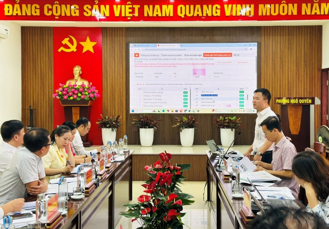 Đoàn giám sát thực địa tại Trung tâm Phục vụ Hành chính côngTại buổi làm việc, sau khi nghe báo cáo và khảo sát thực tế, Đoàn giám sát tập trung đánh giá, làm rõ tình hình, kết quả thực hiện cải cách hành chính, việc tiếp nhận và giải quyết hồ sơ thủ tục của công dân, tổ chức; đồng thời lắng nghe những khó khăn, vướng mắc trong quá trình hoạt động.