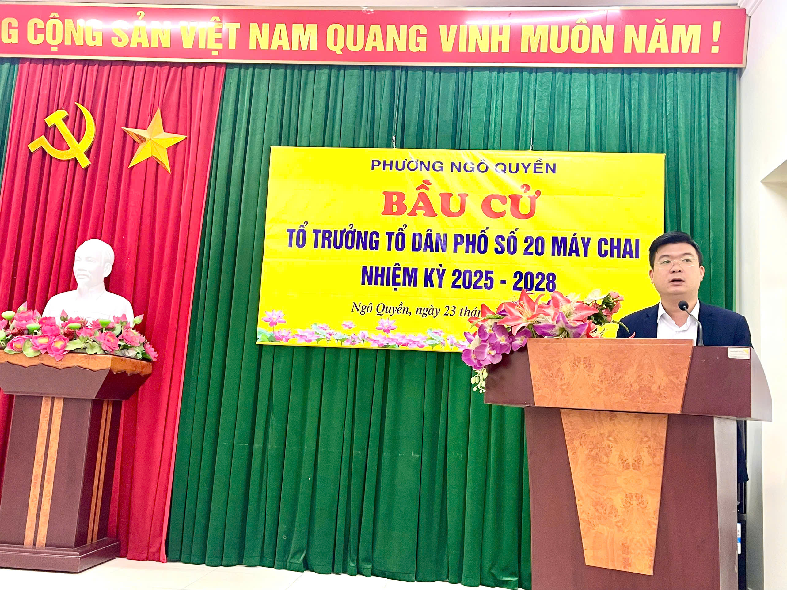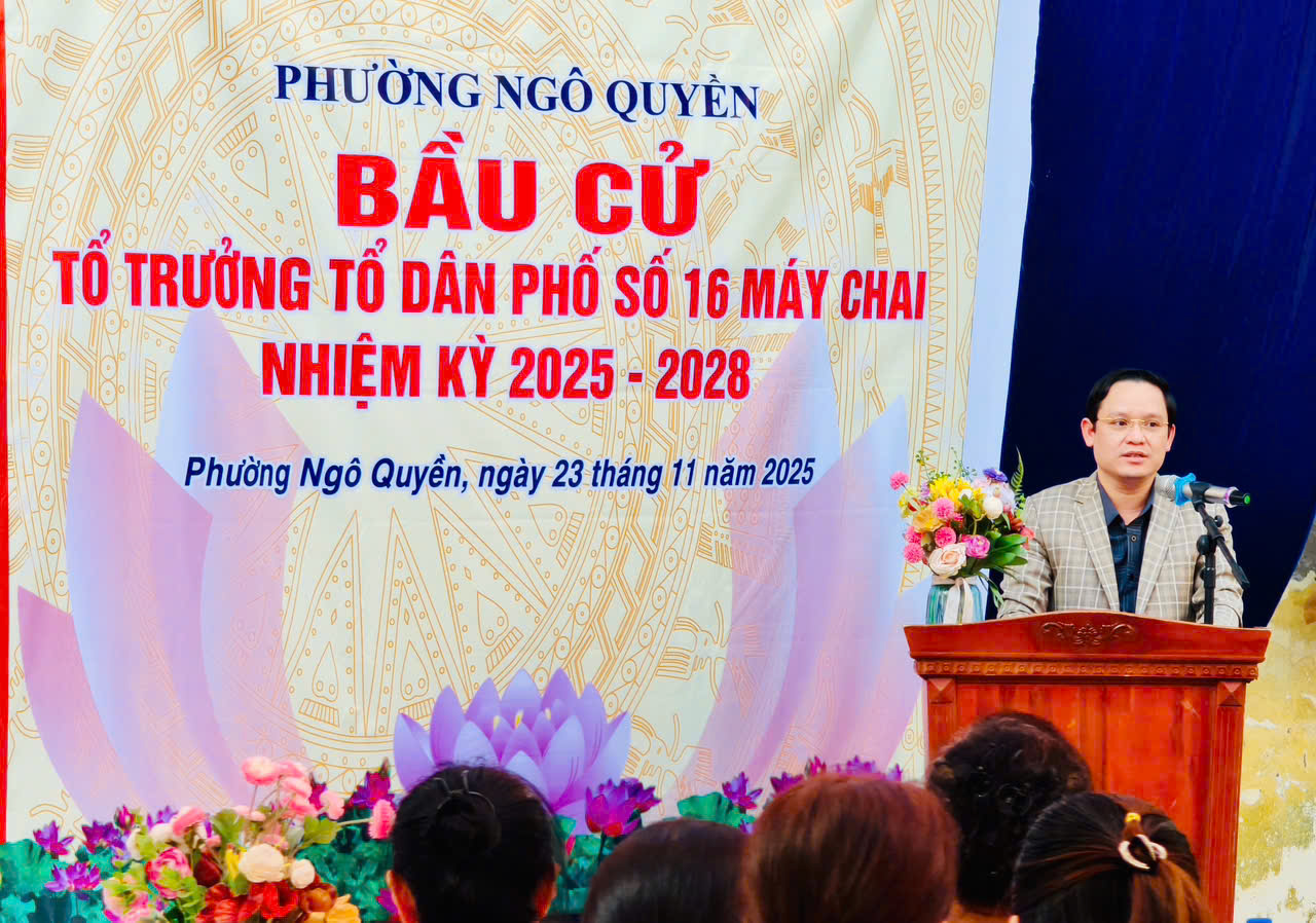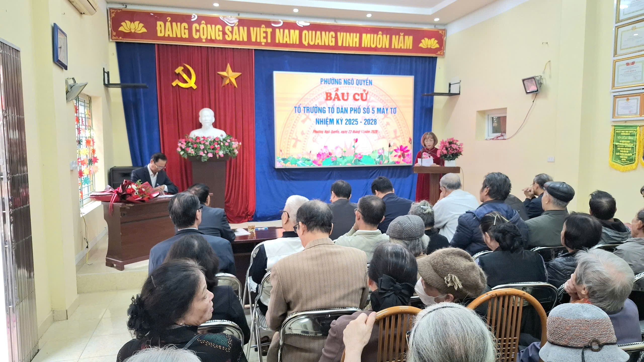 Thực hiện Luật Thực hiện dân chủ ở cơ sở và các hướng dẫn của các cấp, tiếp nối các hoạt động “Ngày hội đại đoàn kết”. Các Tổ dân phố trên địa bàn Phường Ngô Quyền đã tổ chức Hội nghị bầu cử Tổ trưởng Tổ dân phố trên địa bàn. Phát huy dân chủ và quyền làm chủ của nhân dân, động viên sức mạnh vật chất và tinh thần to lớn của nhân dân trong phát triển kinh tế, xã hội, ổn định chính trị, tăng cường đoàn kết, góp phần xây dựng chính quyền trong sạch, vững mạnh, tạo sự thống nhất trong công tác lãnh đạo, chỉ đạo từ cấp ủy Đảng, chính quyền, MTTQ, các tổ chức đoàn thể đến từng Tổ dân phố và nhân dân.