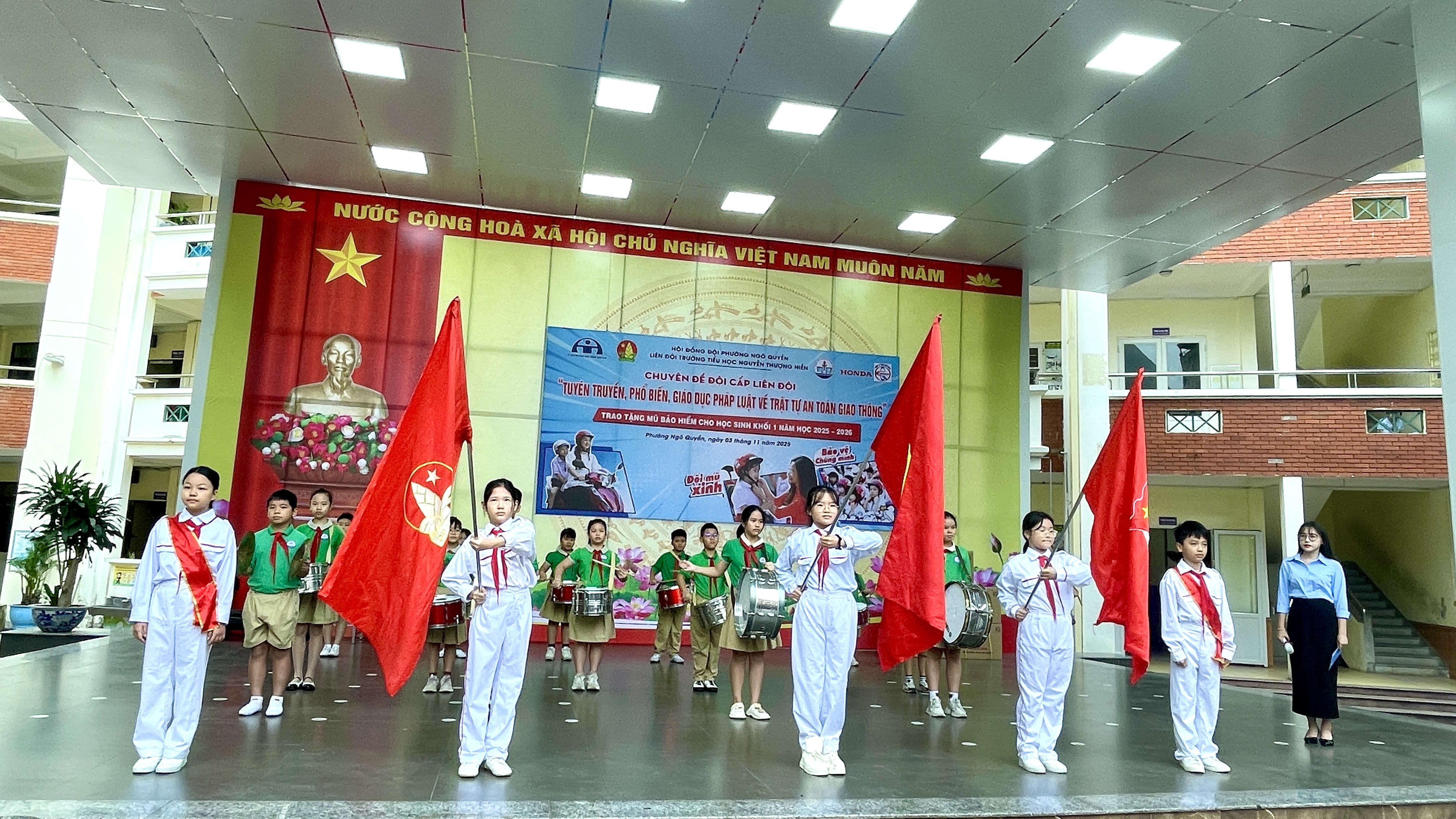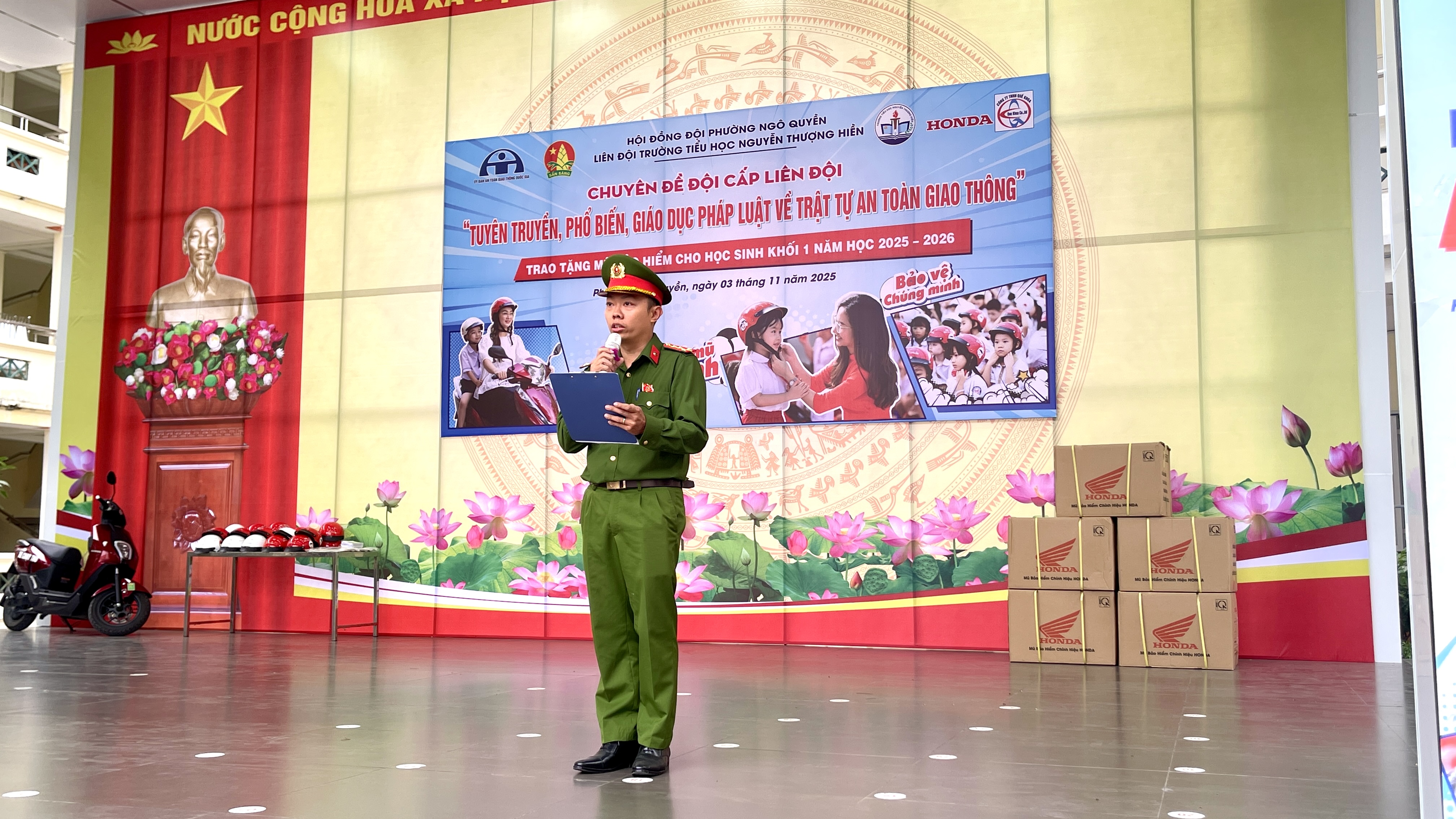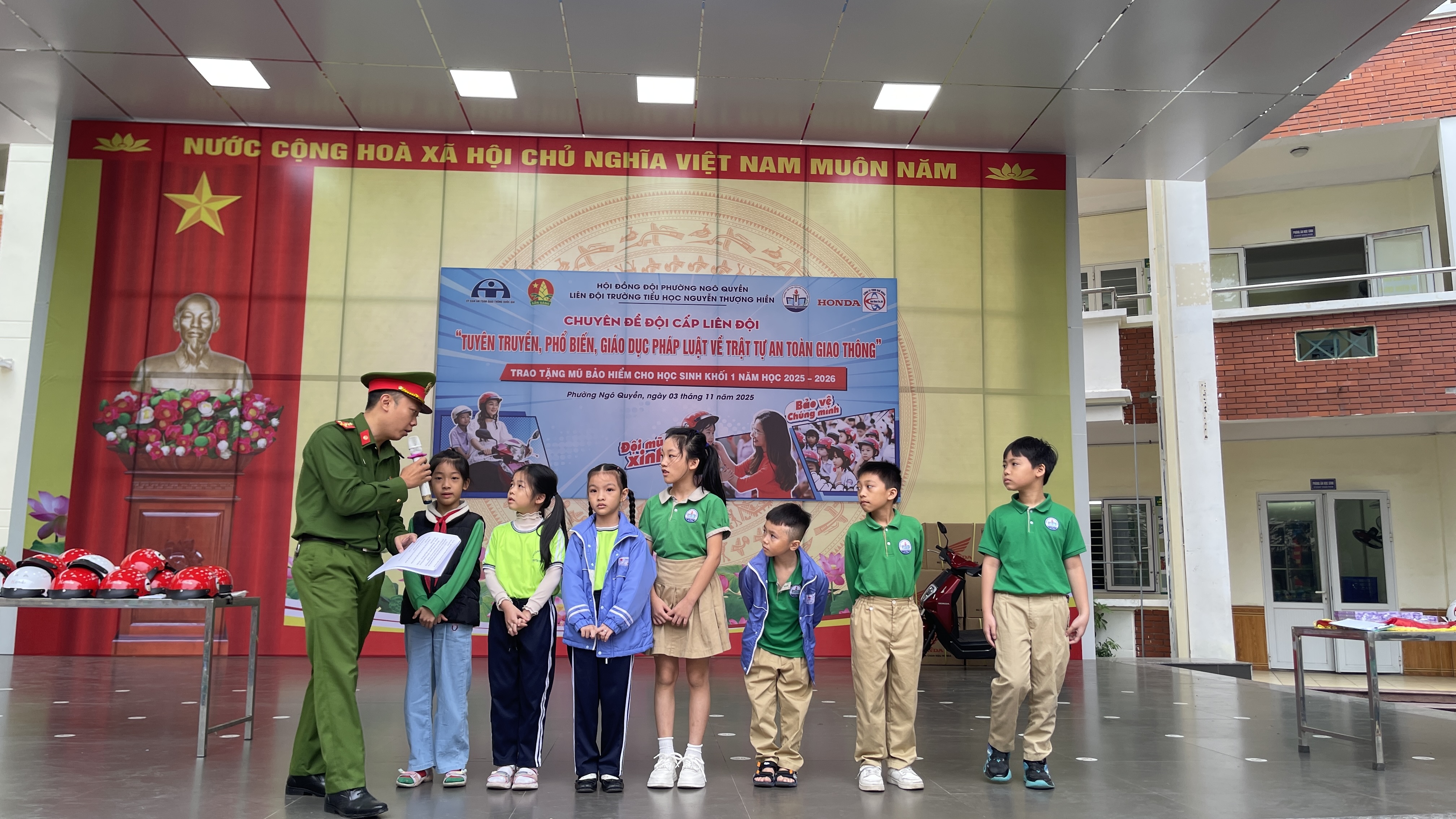 Thực hiện Kế hoạch phối hợp số 76 ngày 12/01/2023 giữa Công an thành phố Hải Phòng và Sở Giáo dục và Đào tạo Hải Phòng về tăng cường tuyên truyền, phổ biến, giáo dục pháp luật về trật tự an toàn giao thông trong các cơ sở giáo dục, sáng ngày 03/11/2025, Liên đội Trường Tiểu học Nguyễn Thượng Hiền tổ chức Chuyên đề cấp Liên đội: “Tuyên truyền, phổ biến giáo dục pháp luật về trật tự an toàn giao thông và trao tặng mũ bảo hiểm cho học sinh khối 1”.