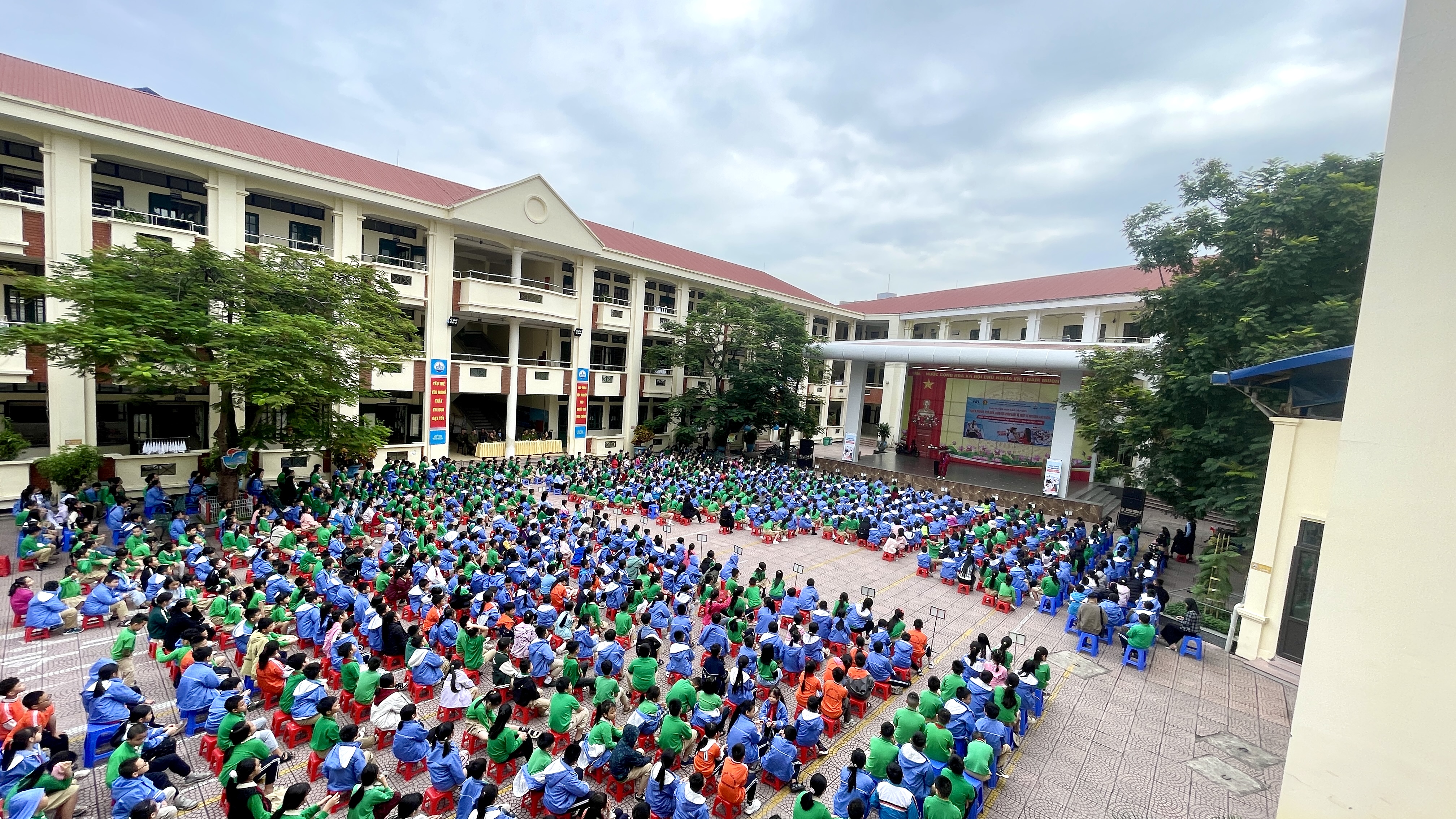 Tham dự chương trình có Ban Giám hiệu nhà trường; đại diện Công an phường Ngô Quyền và Công ty TNHH Quế Khoa; đại diện tổ an ninh trật tự cơ sở, đại diện tổ dân phố trên địa bàn; cùng các thầy cô giáo và toàn thể học sinh của nhà trường.