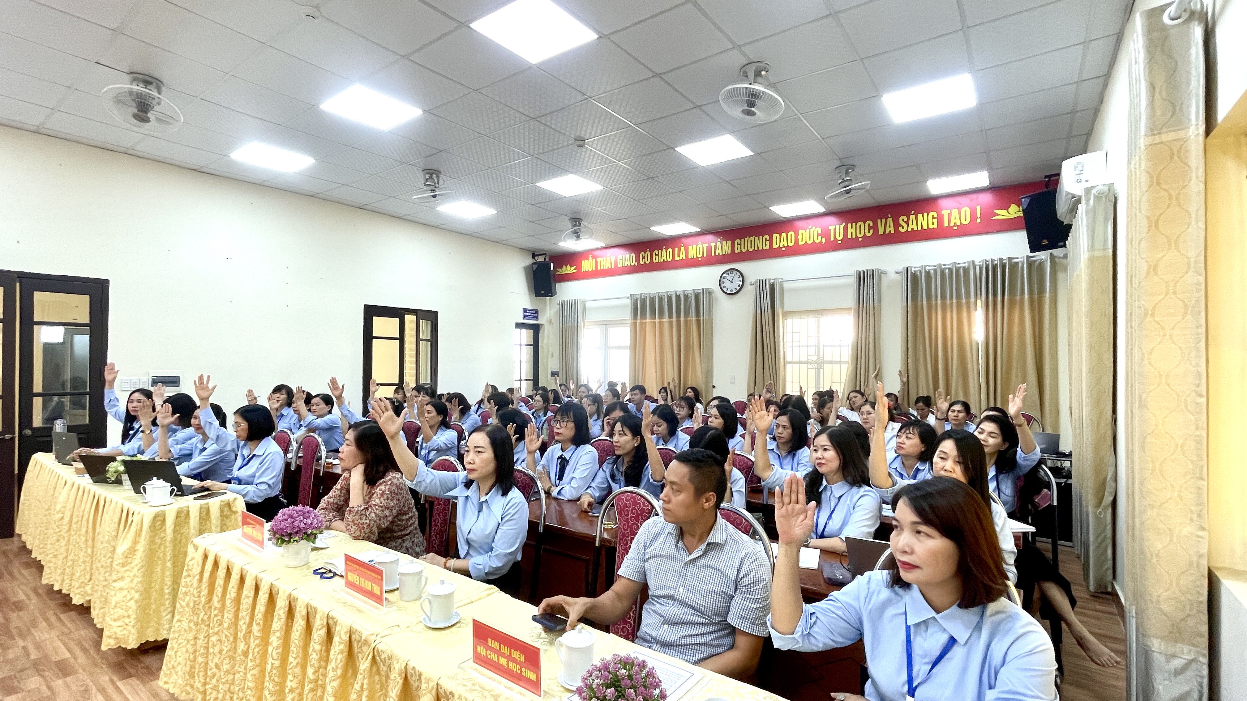 Cán bộ, viên chức, người lao động Trường TH Nguyễn Thượng Hiền biểu quyết