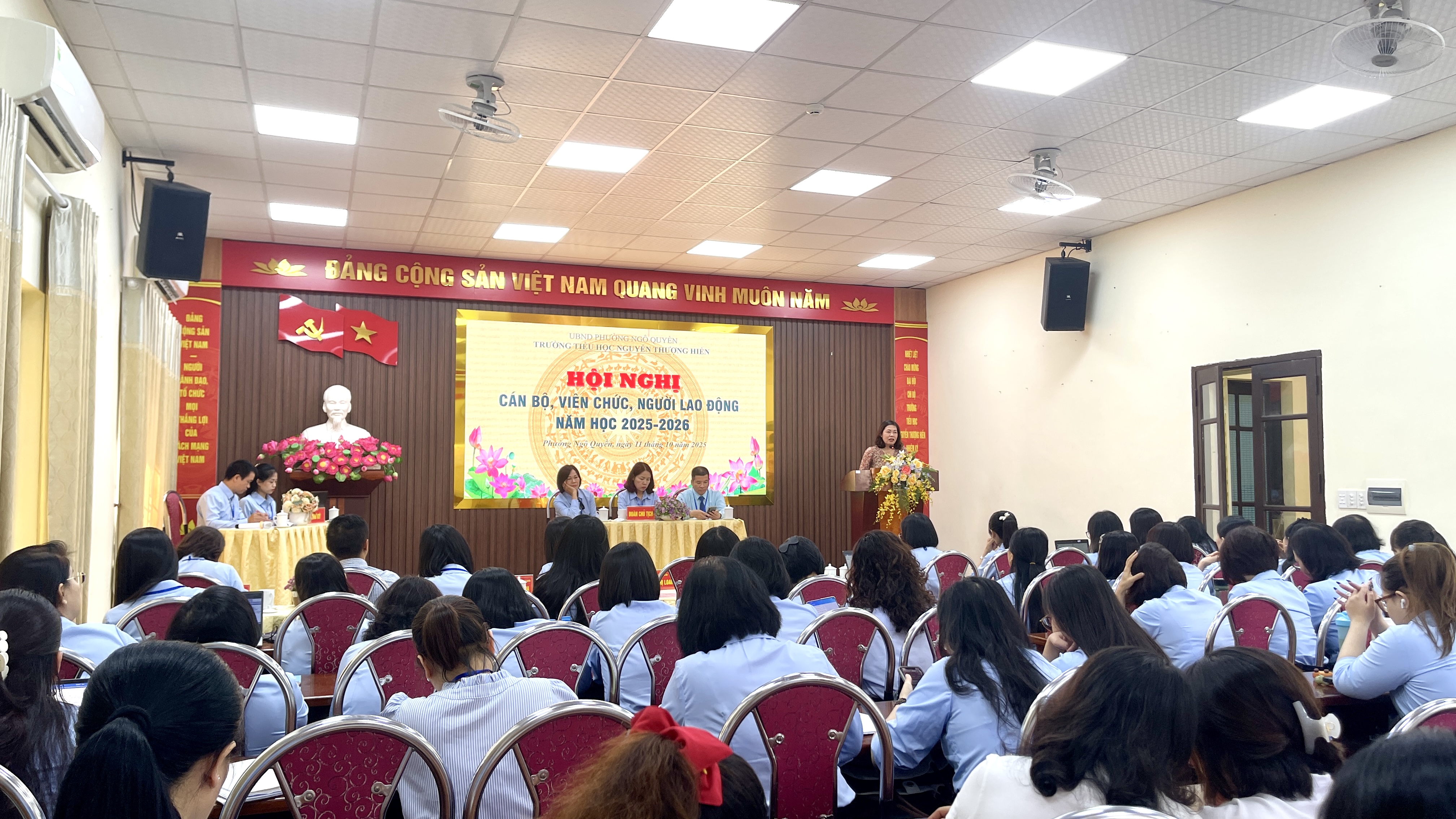 Thực hiện Hướng dẫn số 7074/HD-SGDĐT ngày 25/9/2025 của Sở Giáo dục và Đào tạo Hải Phòng và Công văn số 1019/UBND-VHXH ngày 26/9/2025 của UBND phường Ngô Quyền, sáng ngày 11/10/2025, Trường Tiểu học Nguyễn Thượng Hiền đã long trọng tổ chức Hội nghị Cán bộ, Viên chức, Người lao động năm học 2025 - 2026.