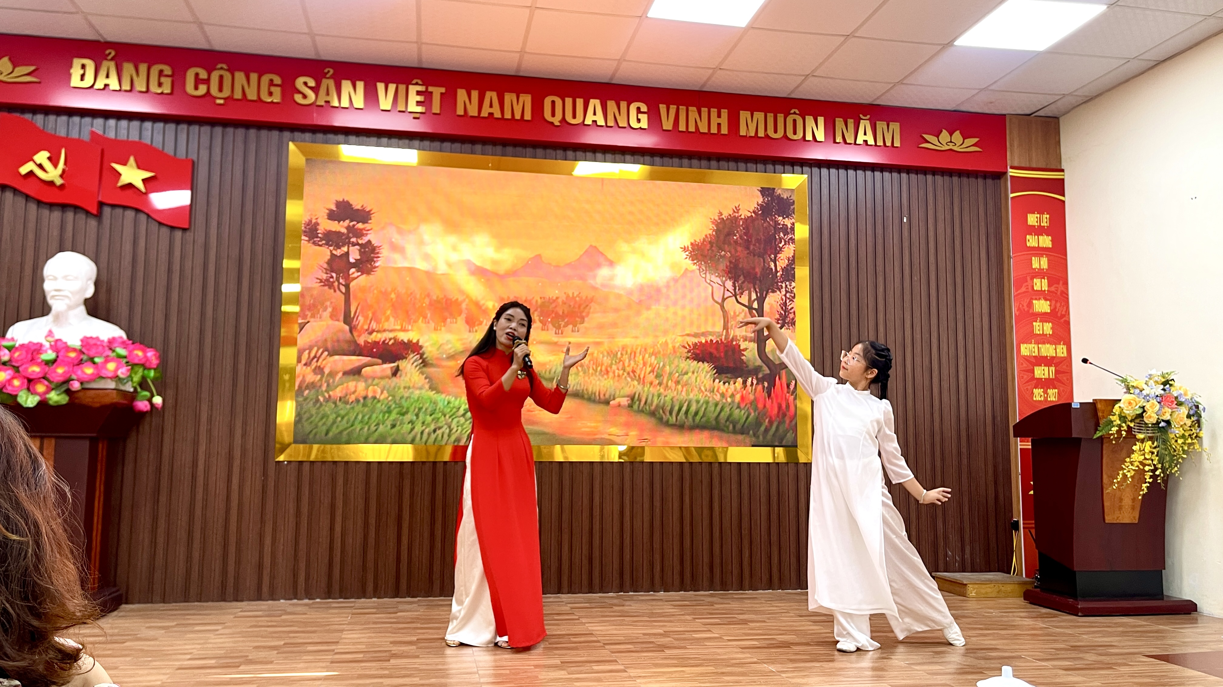 Mở đầu chương trình, thầy và trò nhà trường đã mang đến những tiết mục văn nghệ đặc sắc, tạo bầu không khí phấn khởi, vui tươi, góp phần khích lệ tinh thần toàn thể hội nghị.