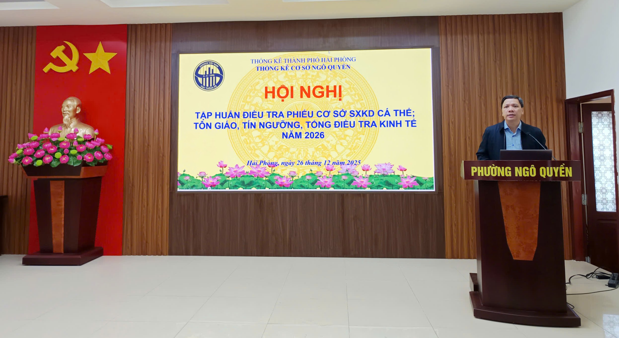 đ/c Mang Quang Đại - Trưởng Thông kê cơ sở Ngô QuyềnĐối với riêng Phường Ngô Quyền có 16 điều tra viên trực tiếp thực hiện thu thập thông tin đối với 3.492 cơ sở sản xuất kinh doanh cá thể và 01 điều tra viên thực hiện thu thập thông tin tại 05 cơ sở tôn giáo, tín ngưỡng; thời gian thực hiện từ ngày 05/01/2026 đến hết ngày 31/3/2026.