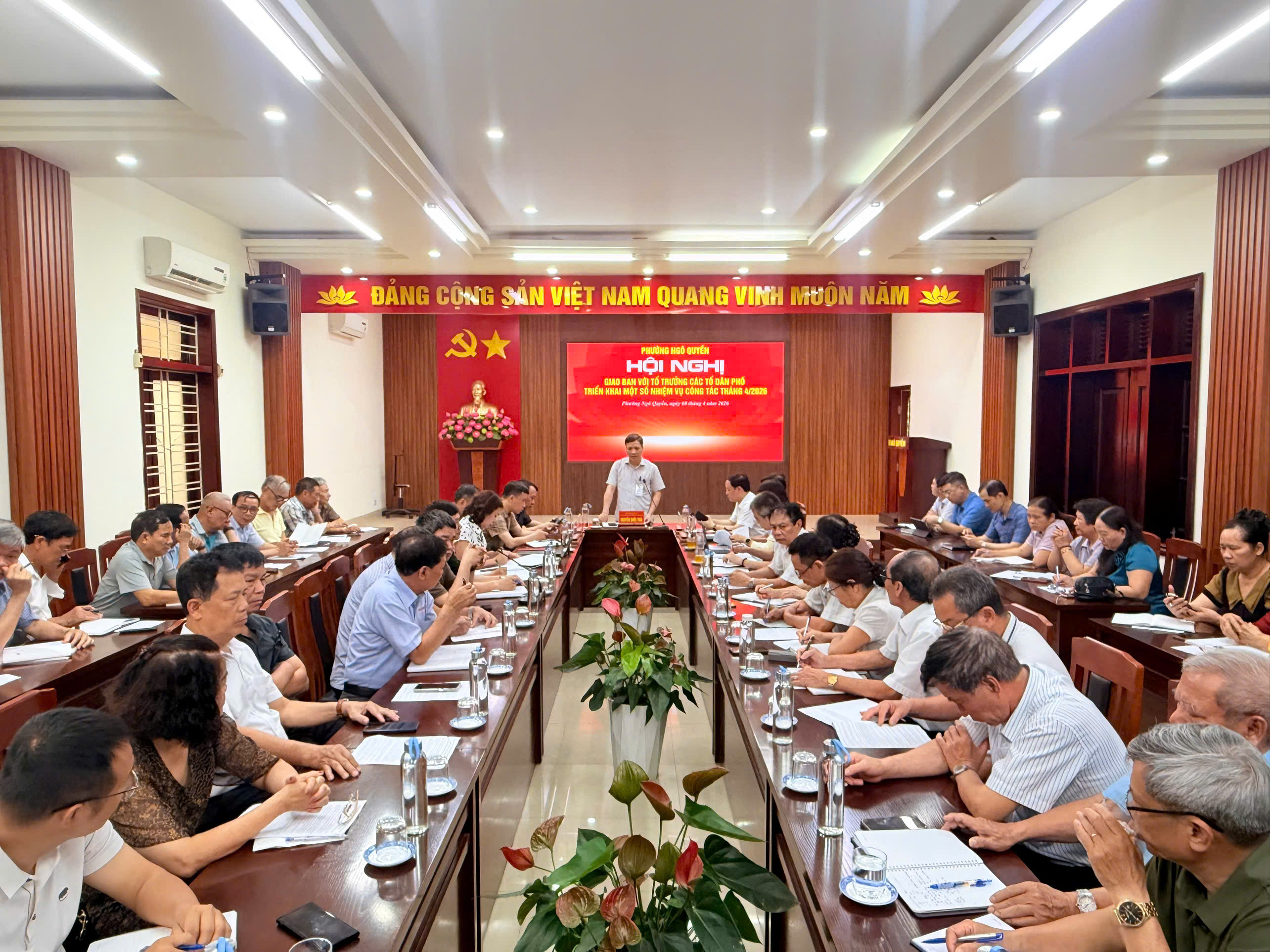 Ngày 08/4/2026, UBND Phường Ngô Quyền tổ chức Hội nghị Giao ban với Tổ trưởng các Tổ dân phố triển khai một số nhiệm vụ công tác tháng 4/2026.